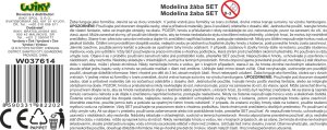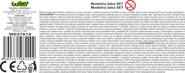 Modelína žába. Velikost 15cm. Žába funguje jako formička, otevírá se ve dvou vrstvách. V jedné vrstvě jsou formičky ve tvaru zvířátek, druhá vrstva tvaruje suroviny na výrobu hamburgeru. Obsahuje formičky, plastelínu, příbor.