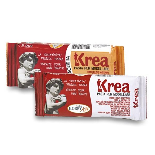 Je možné ji tvarovat rukama nebo modelovacími nástroji. Ideální je nechat hmotu zaschnout přirozeně, větrání může způsobit její popraskání. Čas nutný pro zaschnutí se liší dle, množství použité hmoty a dle klimatických podmínek. Hotový výrobek doporučujeme přelakovat lakem. Díky glazování získá hmota lesklý povrch a bude lépe chráněna. Modelovací hmotu, můžete použít při modelování a vytváření předmětů různých tvarů a velikostí, jako např. výroba soch, loutek, panenek nebo figurek., BALENÍ: 500 G, TIP: Prohlédněte si video, JAK SE S MODELOVACÍ HMOTOU KREA PRACUJE >>