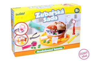 6 modelovacích barev zubařské nástroje model úst a forma vrtačka (2xAA baterie nejsou součástí) Doporučený věk: od 3 let