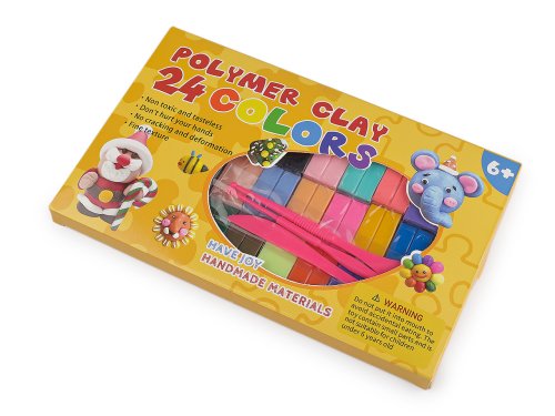 Sada modelovacích polymerových hmot obsahuje 24 ks různých barev. Uvnitř balení najdete i praktické modelovací nářadí a fotonávody. Polymerová hmota se svou konzistencí podobá hmotě Fimo. Po prohnětení je dostatečně jemná, dá se lehce mísit (blendovat). Zároveň je dostatečně pevná, udrží jemné detaily při využití specializovaných technik. Hotové výrobky jsou velmi trvanlivé a odolné. Je ideální pro výrobu šperků, domácích dekorací a předmětů, které používáme každý den. Vymodelovaný výrobek se zapeče v elektrické troubě při 135°C po dobu 15 - 30 minut. Návod k použití: Hmotu prohnětejte a vytvarujte. Pro vypracování jsou vhodné např. modelovací špachtle. Vymodelovaný předmět na aluminiové fólii nebo na skleněné desce vložte do elektrické trouby, předehřáté na 135°C a nechte vytvrdit max. 30 min. Není určeno do mikrovlnné trouby! Skladování: Hmotu skladujte v aluminiové fólii nebo PE sáčcích při pokojové teplotě. Hmota nesmí přijít do styku s polystyrenem, PVC a pěnovým polystyrénem.