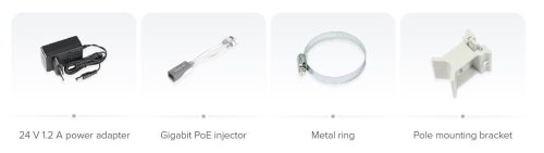 Na jednotce najdete dva LAN porty s PoE-in/LAN1 a PoE-out/LAN2. Přes ně připojit a napájet další zařízení, a rozšířit si tak svou síť například o bezpečnostní kameru. Součástí balení je 24V zdroj, ale zařízení podporuje také napájení v rozsahu 12 V až 57 V.