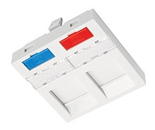 Tento přímý modul Solarix typu French Style je určen pro montáž do modulárních zásuvek a podlahových krabic s rozměrem otvoru 45x45mm. Lze jej tedy použít do většiny běžných modulárních systémů s tímto rozměrem. Tento modul je rovněž kompatibilní se všemi keystony kabeláže Solarix. Barva modulu je bílá (RAL 9003). Součástí dodávky jsou vyměnitelné popisové pole a barevné plastové štítky (vždy červené a modré s ikonou PC a telefonu), které slouží k označení jednotlivých portů. Všechny French style moduly Solarix jsou vybaveny protiprachovou krytkou s pružinou a lze je rovněž osadit do rámečku Solarix SXF-R-2-WH - tj. vznikne tak kompletní modulární zásuvka pod omítku (např. pro použití s krabičkou KO 68) a i na omítku (s boxem Solarix SX9-0-WH).