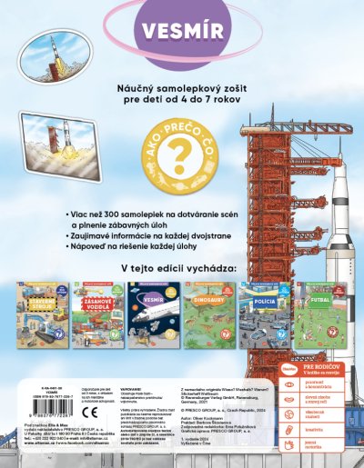 Jak? Proč? Co? V tomhle naučném samolepkovém sešitě pro děti od 4 do 7 let najdete odpovědi snad na všechny zvídavé otázky týkající se vesmíru, vesmírných těles nebo misí. Na každé dvoustraně se dočtete spoustu zajímavostí, a navíc máte k dispozici přes 300 samolepek k dotváření scén a plnění zábavných úkolů! Ty zapeklitější vám dají možná trošku zabrat, ale žádný strach – na konci knížky nechybí malá nápověda…