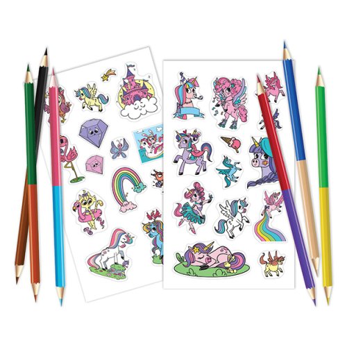 Omalovánky obsahují 96 stran nejrůznějších aktivit, 2 listy samolepek a 6 oboustranných pastelek. To vše v praktickém balení na cesty.