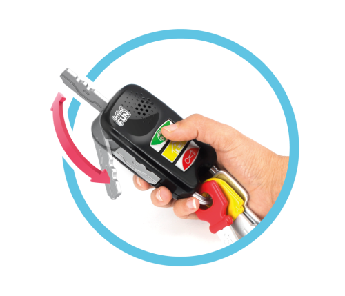 Klíče se 3 tlačítky a se zvukovým efektem. Buď jako tvoji rodiče a měj své vlastní klíče. Produkt rozvíjí jemnou motoriku, objevuje příčiny a důsledky, zvědavost, vnímání zvuku. Produkt vyžaduje: 2× AAA (R03) 1,5V baterie, které jsou součástí balení.