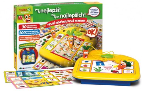 Moje první němčina – zábavná elektronická naučná hra. Dvojčata Carotina vydávají při každé správné kombinaci veselé zvuky! Tato naučná hra z řady naučných her Carotina zahrnuje více než 200 na sebe navazujících her a je určená pro děti od tří let. Nauč se hravou formou abecedu, čísla, barvy a spoustu dalšího – a to vše v němčině.