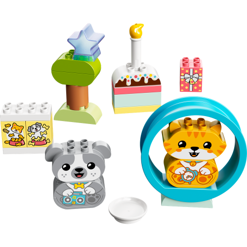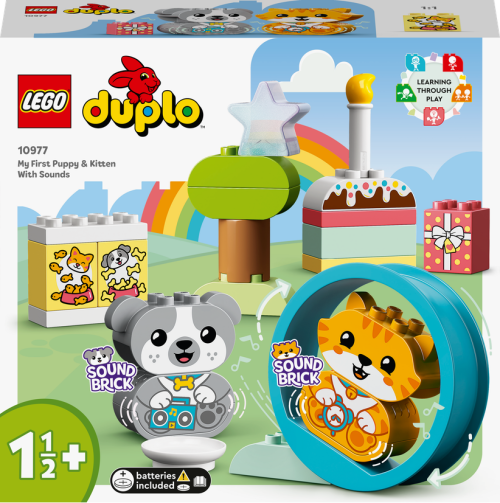 Děti od 18 měsíců si užijí spoustu zábavy, zatímco budou rozvíjet své schopnosti se stavebnicí Moje první štěňátko a koťátko vydávající zvuky (10977) od LEGO® DUPLO®.