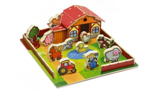 Kvalitní, dřevěná farma, se kterou se děti učí poznávat zvířátka, procvičí motoriku a stimulují logické myšlení. Na dřevěné podložce lze farmu jednoduše sestavit a vytvořit si tak domeček na hraní se spoustou zvířátek. Obsahuje: 28 ks + podložku o velikosti 31 x 31 cm. V krabici. Vhodná od 3 let.