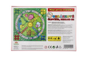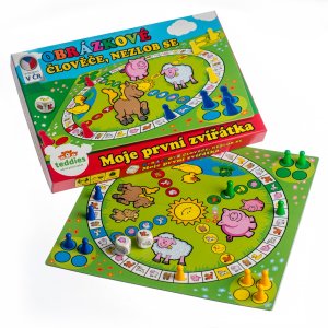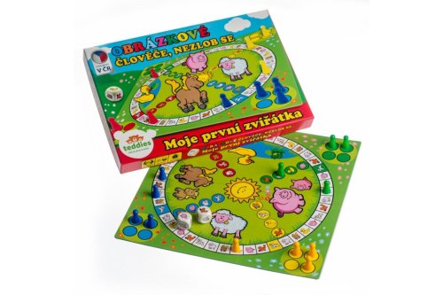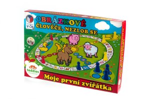Obrázková verze hry Člověče nezlob se, kterou zvládnou i ti nejmenší. Místo čísel jsou na hrací kostce vyobrazeny motivy zvířátek, podle kterých hráči postupují po herním plánu. Hru tak snadno pochopí i malé děti a díky veselým obrázkům se nejen baví, ale i učí. Balení obsahuje: herní plán, 16 figurek ve 4 barvách, hrací kostku s obrázky a návod. Rozměr krabice: 33 x 23 cm Vhodné pro děti od 3 let