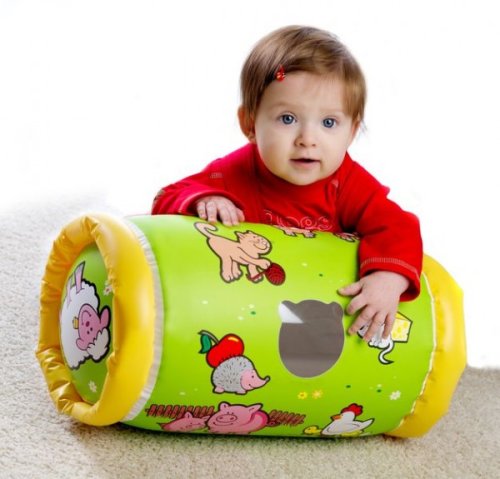 Nafukovací válec podporuje lezení dětí a poskytuje oporu, která je základním předpokladem k tomu, aby se dítě pokoušelo postavit na nohy. Ve vnitřní části jsou tři rolničky, které při pohybu vydávají zvuk. Pro větší děti je válec vhodný např. k vodním hrátkám, v krabici, bez ftalátů a řádně certifikován. Rozměr: 42 x 23 cm Je vhodný od 6 měsíců
