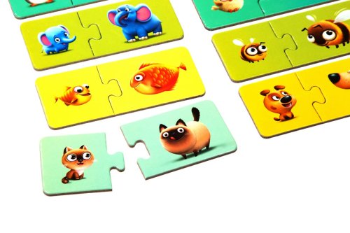 Puzzlika, nová značka puzzlů s moderním kreativním designem, přináší pro malé děti aktivní učení formou zábavné hry. Poznáte mláďátko a někoho dalšího z jeho rodiny? V krabičce naleznete 20 velkých pevných puzzlů tvořících 10 samostatných dvojic kartiček, které spolu tematicky souvisejí. Jedna polovina kartiček obsahuje ilustrace mláďat a na druhé polovině kartiček je vyobrazen jiný člen z jeho rodiny. Cílem je vytvořit správné kombinace a nasbírat co nejvíce párů. Naučné puzzle je skvělá hra pro malé děti, která u nich rozvíjí logické myšlení, představivost, kreativitu, jemnou motoriku a různé poznávací znalosti. Puzzle jsou vyrobeny z velice pevného vícevrstvého kartonu s lesklým povrchem. Karton byl vyroben z kvalitního, ekologicky pěstovaného dřeva. Puzzle je možné otřít vlhkým hadříkem. Nevhodné pro děti do 2 let. Vyrobeno v Evropě.