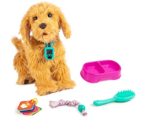 pInteraktivní pejsek Moji je mazlivé štěňátko, které má hebkou srst a roztomilý výraz. Reaguje jako skutečný pejsek na hlasové povely a dotek více než 150 unikátními reakcemi. Můžete ho naučit 10 psích triků a užít si s ním spoustu zábavy. Kolem krku má navíc speciální chytrý obojek s displejem, na kterém se zobrazují jeho potřeby a nálady. Na ty je možné vedle hlasových povelů a dotyku reagovat také pomocí speciálních kartiček „péče“ a zajistit tak, aby měl Moji vše co potřebuje.brSoučástí balení jsou 3 nezbytné psí doplňky – miska, kartáč na srst a uzel na přetahování./pBaterie: 4x LR44 (nejsou součástí balení)brPro děti od 6 let.