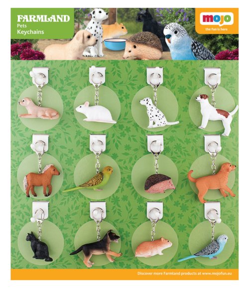 Displej obsahuje 36 ks přívěsků na klíče s motivem domácích mazlíčků. Přívěsek lze použít jako stylový doplněk na klíče nebo jako malý dárek k narozeninám. Hlavní vlastnosti: 36 ks přívěsků na klíče s motivem domácích mazlíčkůbez ftalátůvyhovuje evropským normámvhodné od 3 let věku