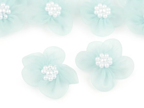 Jemný monofilový květ je velice vzdušný. V jeho středu jsou našité lesklé perličky. Použití: Květ můžete našít jako dekoraci na oděvy, například na společenské šaty, halenky, trička nebo svetry. Je vhodný i na zdobení klobouků, čepic a čelenek do vlasů. Můžete ho také pomocí lepidla přilepit na brožový můstek a dalším dozdobením vytvořit zajímavý šperk. [V mixu nejsou bílé květy.]