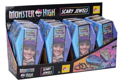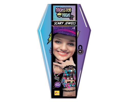 Monster High DIY sada na výrobu strašidelných náramků. Krabička ve tvaru rakvičky. Obsah balení - korálky, háčky, provázky, a přívěsky s motivy příšerek.