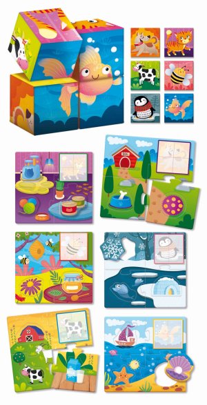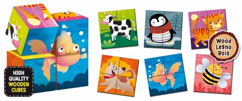 Dřevěné kostky se zvířátky pro procvičení logického myšlení. Vhodné pro děti od 1 roku.