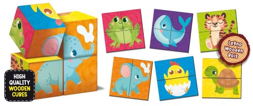 Dřevěné kostky a puzzle se zvířátky pro procvičení logického myšlení. Vhodné pro děti od 1 roku.
