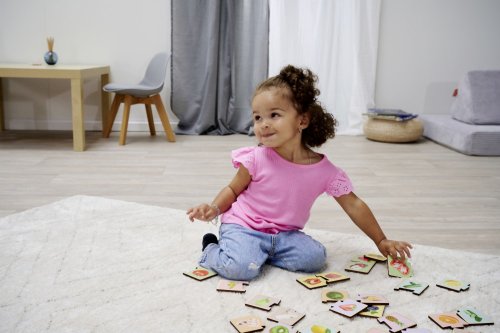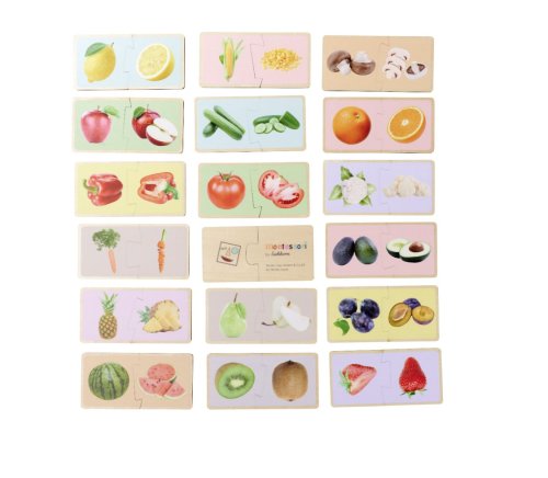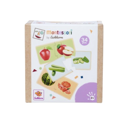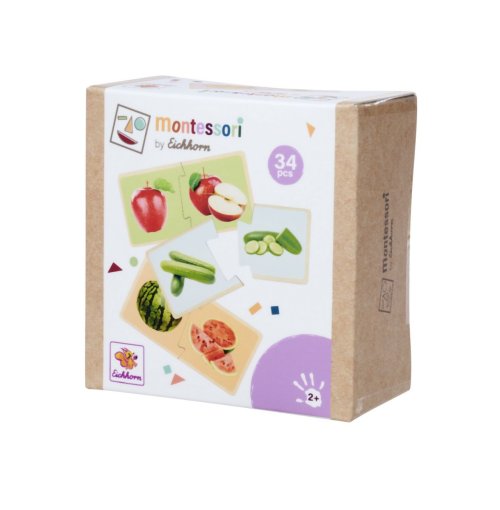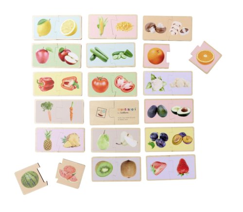 S těmito atraktivními dřevěnými puzzle z řady Montessori se vaše dítě naučí poznávat různé druhy ovoce a zeleniny. Shodné dvojice dílků musí poskládat a poté správně pojmenovat. Na 36 dílcích jsou natištěny realistické obrázky ovoce a zeleniny, které mohou děti vidět v každodenním životě. Dřevěné puzzle Montessori jsou vyrobeny ze 100% kvalitního lipového dřeva s certifikátem FSC a jsou vhodné pro děti od 2 let.
