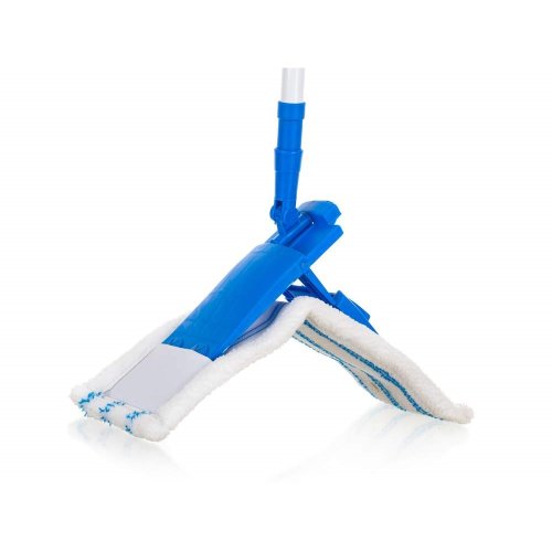 Mop plochý s mikrovláknem, a teleskopickou tyčí 68 - 120 cm, barva těla mopu: tmavě modrá, mikrovlákno bílé s modrými stripy.