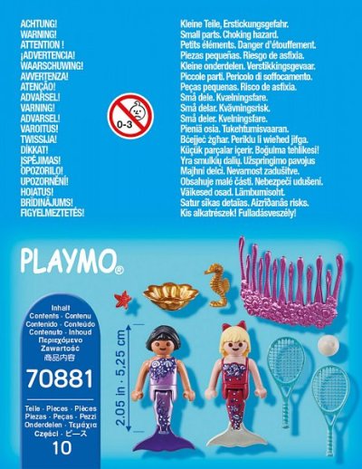 Pod vodou se toho vždy děje hodně. Dnes se tyto dvě mořské panny setkávají, aby si zahrály tenis. Nejprve postavte tenisovou síť, připravte rakety a hra může začít. Hřeben lze použít jako tenisovou síť nebo jako ozdobu do vlasů. Rozměry: 12 x 9,3 x 3,8 cm. Věk: 4+