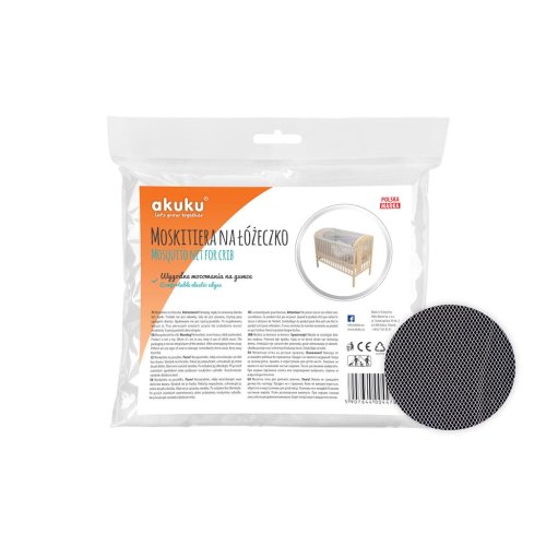 Univerzální moskytiéra Akuku na dětskou postýlku. Díky svým univerzálním rozměrům a stahovací gumičce sedí ke každé postýlce. Dokonalé chrání Vaše dítě před hmyzem a zaručuje klidný spánek. Rozměry: 120x60 cm. Složení: 100% polyester.