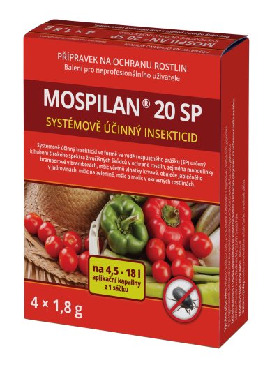 Mospilan je systémově účinný insekticid ve formě ve vodě rozpustného prášku určený k hubení širokého spektra živočišných škůdců v ochraně rostlin, zejména mandelinky bramborové v bramborách, mšic na zelenině, molic a mšic v okrasných rostlinách.