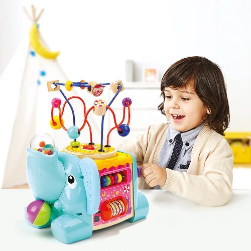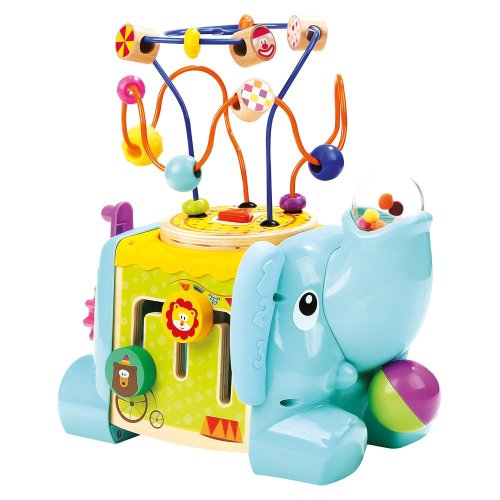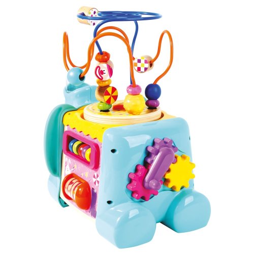 Motorická kostka ve tvaru slona je velice zábavná hračka pro malé děti. S mnoha různými úkoly, s nimiž se setkají při hraní s touto kostkou, si procvičí jemné motorické dovednosti rukou, natrénují logické myšlení a soustředění. Na vrchní straně kostky je umístěn motorický labyrint.
