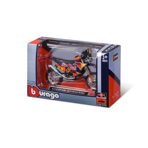 Objevte vzrušení ze závodění s touto detailně zpracovanou modelovou motorkou Bburago Red Bull KTM Rally Dakar 2019! Vyrobena z kombinace kovu a plastu, motorka je připravena na volný chod a nabízí realistické detaily, které potěší všechny malé i velké nadšence. Dodává se v elegantní krabičce, ideální jako dárek nebo sběratelský kousek. Rozměr balení: 17 x 11 cm Vhodné pro děti od 3 let