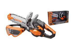 Motorová pila a ochranné brýle. Velikost pily 34 cm. 3xAA nejsou součástí. Vydává zvukové efekty. Aktivace tlačítkem na levé straně.