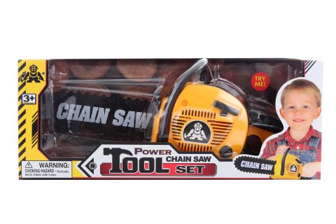 Plastová motorová pila. není na baterie, řetěz se pohybuje pomocí manuálního stlačování tlačítka. Rozměry balení cca 38x8,5x15 cm. Věk 3+