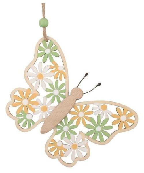 Motýl vyřezávaný ze dřeva na zavěšení 9 x 13,5 cm