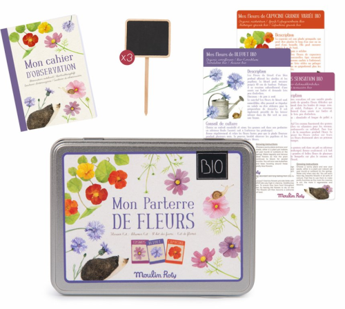 Krásná sada se semínky květin. Sada obsahuje semínka lichořeřišnice, krásenky a chrpy, tři tabulky pro označení záhonku a zápisník, do kterého si můžete napsat své postřehy. Vše v krásně ilustrovaném, plechovém boxu. Vypěstujte si vlastní krásnou zahradu! Nevhodné pro děti do 3 let.