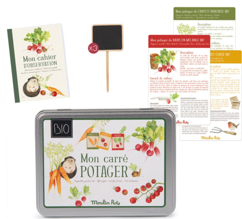 Krásná sada se semínky zeleniny. Sada obsahuje semínka ředkviček, cherry rajčátek a mrkve, tři tabulky pro označení záhonku a zápisník, do kterého si můžete napsat své postřehy. Vypěstujte si vlastní zeleninu, která poslouží jako svačinka pro děti i dospělé. Nevhodné pro děti do 3 let.