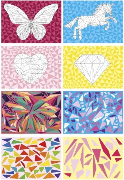 Kreativní sada MOXY Nalepování podle čísel umožňuje dětem vytvářet barevné obrázky.