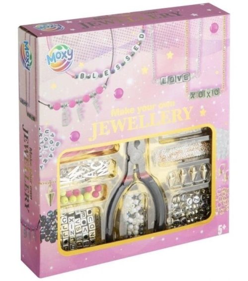 Set na výrobu šperků je ideálním dárkem pro každou šikovnou slečnu. Balení obsahuje vše potřebné ke kreativní tvorbě náramků (kleštičky, řetízky, zapínání, korálky, přívěsky, šňůrky). Vyráběním náramků se zdokonaluje jemná motorika prstů, kreativita a malé šikulky se na dlouhou dobu zabaví. Vhodné pro dívky od 5 let.