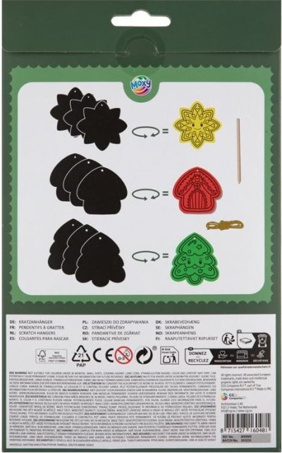 Kreativní sada škrabacích přívěsků s vánočními motivy je skvělá aktivita pro děti i dospělé. Balení obsahuje 9 přívěsků ve tvaru vánočních symbolů (např. stromeček, vločka, hvězda) s černou vrchní vrstvou, pod kterou se skrývají barevné vzory. Stačí vzít přiložené škrabátko a postupně odkrývat skryté barvy – každý přívěsek se tak promění v jedinečnou ozdobu. Díky přiloženým šňůrkám je možné hotové dekorace snadno zavěsit na stromeček, do okna nebo použít jako originální dárek. Škrabací technika rozvíjí kreativitu, jemnou motoriku a trpělivost . Je to zábavný způsob, jak si zpestřit vánoční čas a vytvořit si originální ozdoby vlastníma rukama. Vhodné pro děti od 4 let.