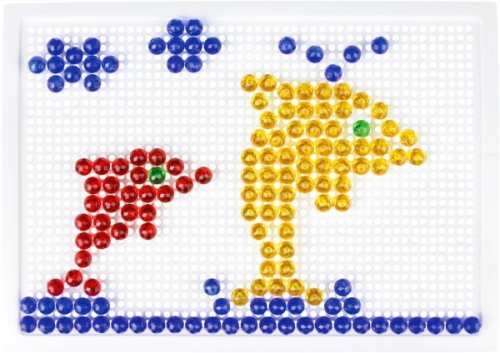 Skládej a vytvářej svůj vlastní svět plný krásných obrázků do mřížkované podložky. Poskládej si akvarium nebo si vytvoř třeba letadlo. Je to jen na tobě. Tvoř znovu a znovu díky 260 kusům plastových hlaviček o průměru 1,5 cm, které na desce umístíš přesně na místo, kam se ti bude hodit! Rozměr krabice: 33 x 24 x 3,5 cm Vhodné pro děti od 3 let