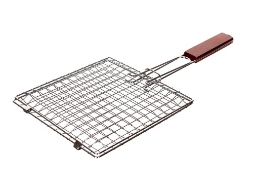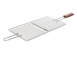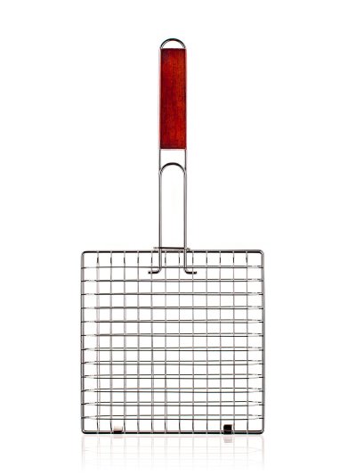 Hranatý grilovací rošt s dřevěnou rukojetí využijete pro snadné grilování masa. Rošt je vyroben z pochromované oceli.