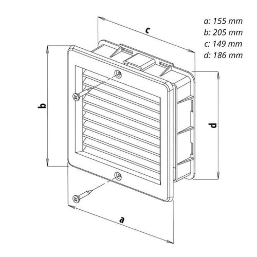 • Obsah balení: Větrací mřížka, rámeček, vruty a hmoždinky.