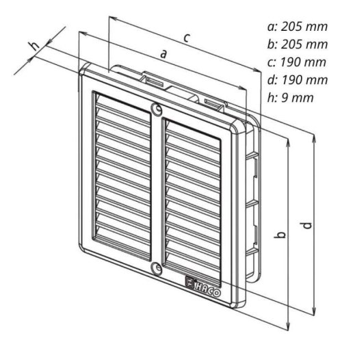 Obsah balení: větrací mřížka, rámeček z plastu, nerez vruty a hmoždinky.