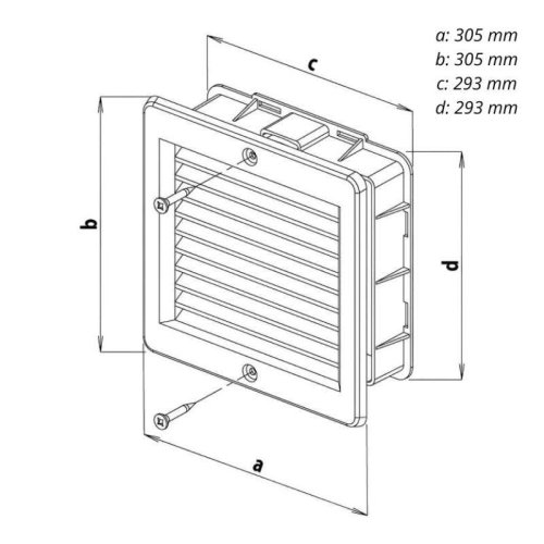 • Obsah balení: Větrací mřížka, rámeček, vruty a hmoždinky.