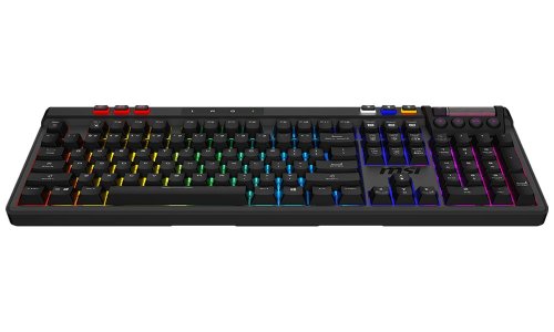 S výkonnou 4200mAh lithium-ion baterií poskytuje výdrž až 1500 hodin používání a nabíjí se za pouhých 7 hodin. Klávesnice je vybavena RGB podsvícením Mystic Light nastavitelným pro každou klávesu, magnetickou opěrkou zápěstí z paměťové pěny a pokročilou tlumicí konstrukcí pro minimalizaci nežádoucích zvuků.