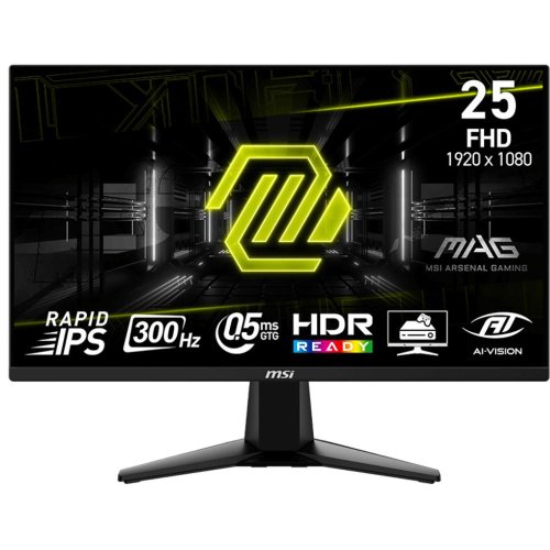 Úhlopříčka: 24,5" / 62 cm Rozlišení: 1920 × 1080 px Formát displeje: 16:9 Typ displeje: IPS Jas: 250 Nits Obnovovací frekvence: 300 Hz Kontrast statický: 1000:1 Kontrast dynamický: 100000000:1 Odezva: 0,5 ms Pozorovací úhel: 178° Tvar obrazovky: Rovná Orientace: Horizontální Barevná hloubka: 8 bit