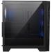Kvalitní počítačová skříň formátu Middle Tower nabízí jednu 2,5" a dvě kombinované 2,5"/3,5" pozice pro SSD a pevné disky. Skříň je vybavena průhlednou bočnicí a poloprůhledným čelem s perforací pro optimální proudění vzduchu. Předinstalovány jsou čtyři 120mm ventilátory s ARGB podsvícením. Rychlou změnu podsvícení umožňuje tlačítko na horním panelu. Zde se také nachází dva porty USB 3.0, sluchátkový výstup a audio vstup pro mikrofon. Ve skříni je dostatek prostoru pro chladič CPU do výšky až 160 mm a grafickou kartu o délce až 390 mm. Důmyslné řešení umožňuje pohodlné umístění až 360 mm dlouhého výměníku vodního chlazení na horní straně. Potěší také přítomnost prachových filtrů. Skříň je dodávána bez zdroje.