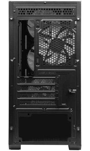 Kvalitní počítačová skříň formátu Micro Tower nabízí dvě 2,5", jednu 2,5"/3,5" a jednu 3,5" pozici pro SSD a pevné disky. Na horním panelu se nachází dva porty USB 2.0, jeden USB 3.0, sluchátkový výstup a audio vstup pro mikrofon. Vybavena je čtyřmi 120 mm ventilátory s ARGB podsvícením, které spolu s perforovaným čelním panelem zajišťují dostatečné proudění vzduchu. Ve skříni je dostatek prostoru pro chladič CPU do výšky až 160 mm a grafickou kartu o délce až 300 mm. Skříň disponuje průhlednou bočnicí a je dodávána bez zdroje. Důmyslné řešení umožňuje pohodlné umístění až 240 mm dlouhého výměníku vodního chlazení na přední i horní straně. Součástí skříně je také magnetický prachový filtr.