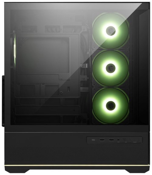Prémiová skříň formátu middle tower s 270° panoramatickým designem a podporou back-connect základních desek.