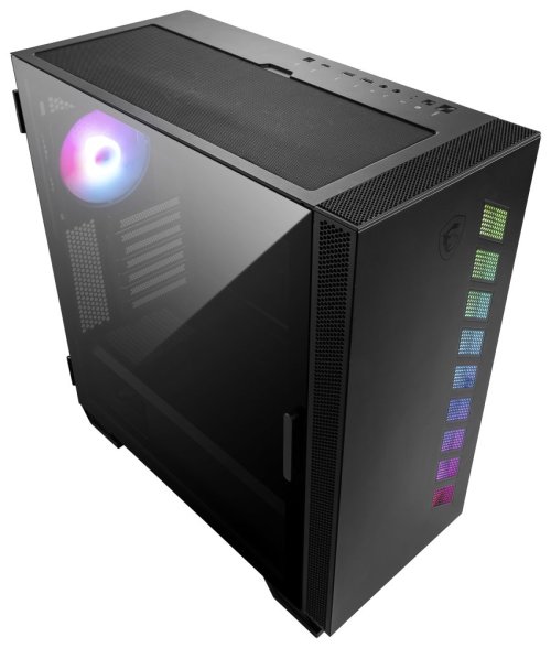 Kvalitní počítačová skříň formátu Middle Tower nabízí dvě 2,5" pozice pro SSD disky a dvě 3,5" pozice pro pevné disky. Skříň je vybavena průhlednou bočnicí, která spolu s ARGB podsvícením předního panelu zajišťuje vytříbený design. Rychlou změnu podsvícení umožňuje tlačítko na horním panelu. Zde se také nachází dva porty USB 3.0, jeden port USB-C, sluchátkový výstup a audio vstup pro mikrofon. Předinstalován je jeden 120 mm ARGB ventilátor na zadní straně. Ve skříni je dostatek prostoru pro chladič CPU do výšky až 175 mm a grafickou kartu o délce až 380 mm. Důmyslné řešení umožňuje pohodlné umístění až 360 mm dlouhého výměníku vodního chlazení na přední i horní straně. Samozřejmostí jsou prachové filtry. Skříň je dodávána bez zdroje.