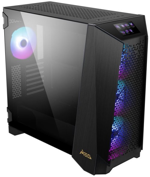 Moderní počítačová skříň s modulárním designem, průhlednou bočnicí z temperovaného skla a poloprůhledným čelem s perforací pro optimální proudění vzduchu. Formát Middle Tower nabízí dostatek prostoru pro uložení čtyř disků, základní desky o velikosti E-ATX a až deseti ventilátorů. Předinstalovány jsou čtyři 140 mm ventilátory s ARGB podsvícením. Hornímu panelu dominuje 4,3" dotykový displej s rozlišením 800 × 480 obrazových bodů, který zobrazuje širokou škálu systémových informací a nastavení. Dále se zde nachází dva porty USB 3.0, jeden port USB-C, sluchátkový výstup a audio vstup pro mikrofon. Ve skříni je dostatek prostoru pro chladič CPU do výšky až 185 mm a grafickou kartu o délce až 400 mm. Díky přiloženému držáku lze grafickou kartu instalovat i vertikálně (PCIe kabel není součástí balení). Důmyslné řešení umožňuje pohodlné umístění až 360 mm dlouhého výměníku vodního chlazení na přední, boční nebo vrchní straně. Součástí skříně je také sada magnetických prachových filtrů. Dodávána je bez zdroje.