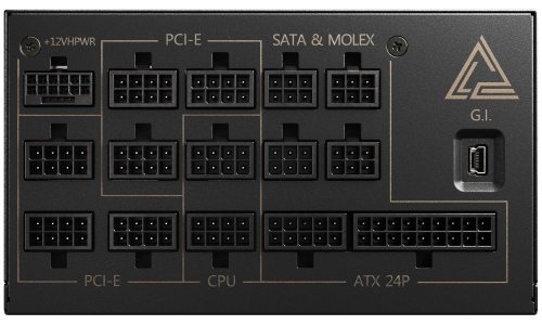 Napájecí zdroj o výkonu 1300 W je osazen tichým a přitom výkonným 120 mm velkým ventilátorem s HDB ložiskem. Zdroj splňuje certifikaci 80PLUS Platinum, standard ATX 3.0 a má odpojitelné kabely. Prostřednictvím MSI Gaming Intelligence je možné v reálném čase sledovat spotřebu jednotlivých komponentů, nastavovat rychlost ventilátoru či přepínat režimy Multi/Single jedním kliknutím.