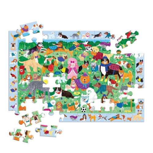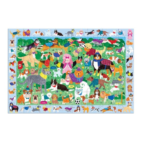Puzzle "skládej a hledej" od Mudpuppy je zábavné puzzle se 64 dílky a také dvojnásobná zábava, která kombinuje skládání puzzle s hledáním skrytých pejsků v jednom obrázku. Tato skládačka přináší dobrodružný zážitek prostřednictvím obrázku. Nejprve si děti mohou poskládat puzzle se scénou plnou roztomilých pejsků. Po složení puzzle si děti mohou vyzkoušet své pozorovací schopnosti a najít více než 40 pejsků v ohraničení kolem obrázku. Jsou tam všechny, můžete je najít? Puzzle jsou vyrobeny za použití významného podílu recyklovaného papíru a nabízí špičkový potisk nezávadnými barvami. Jsou opatřeny matnou povrchovou úpravou, která zajišťuje za všech okolností věrné podání detailů i barev. Jejich zadní strana je potažena hladkým, na dotek příjemným povrchem, díky němuž se při skladování rozloženého puzzle netvoří prach. Spolu s pečlivě zabalenými dílky naleznete v balení také letáček s návodným obrázkem, který zpravidla obsahuje další informace o tvůrcích a pozadí vzniku díla. Dodáváno v mimořádně pevné a poutavě zpracované kartonové krabičce vyrobené z recyklovaného kartonu. Hlavní vlastnosti: 64 precizně vyřezaných dílkůvyrobeno s použitím recyklovaných a udržitelně získaných materiálůpečlivě vybraný motiv od renomovaných tvůrců a umělcůpotisk a provedení nejvyšší kvalityobsahuje návodný obrázek